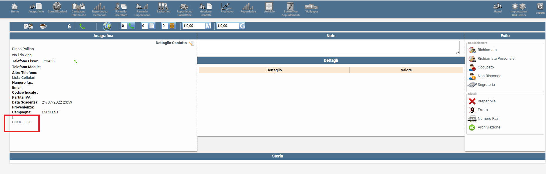 Una volta caricata ed inserita la lista in campagna, dal pannello operatore apparirà ciò che segue: