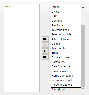 Spostare "ALTRO(HTML)" verso il riquadro di destra e la chiave "ALTRO" verso il riquadro di sinistra: