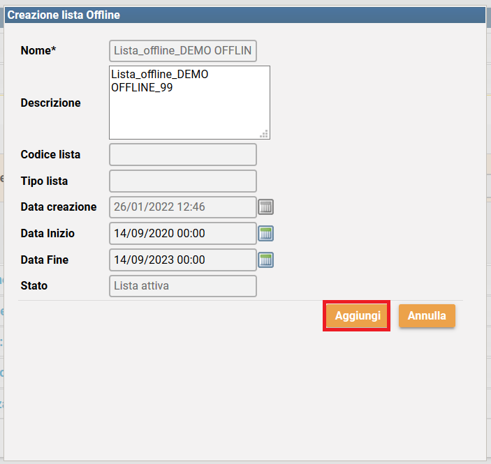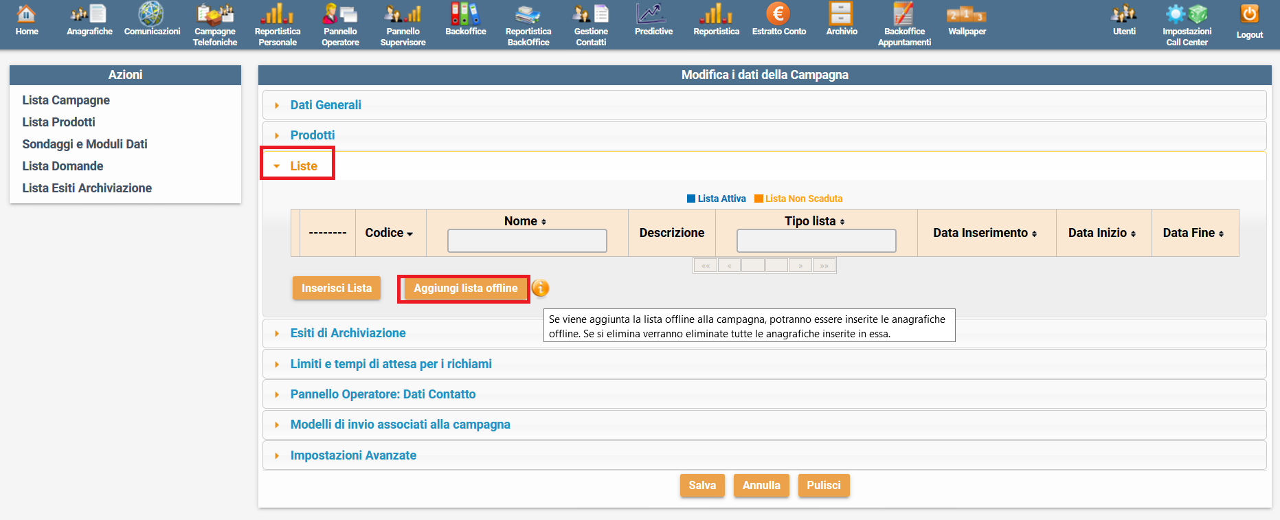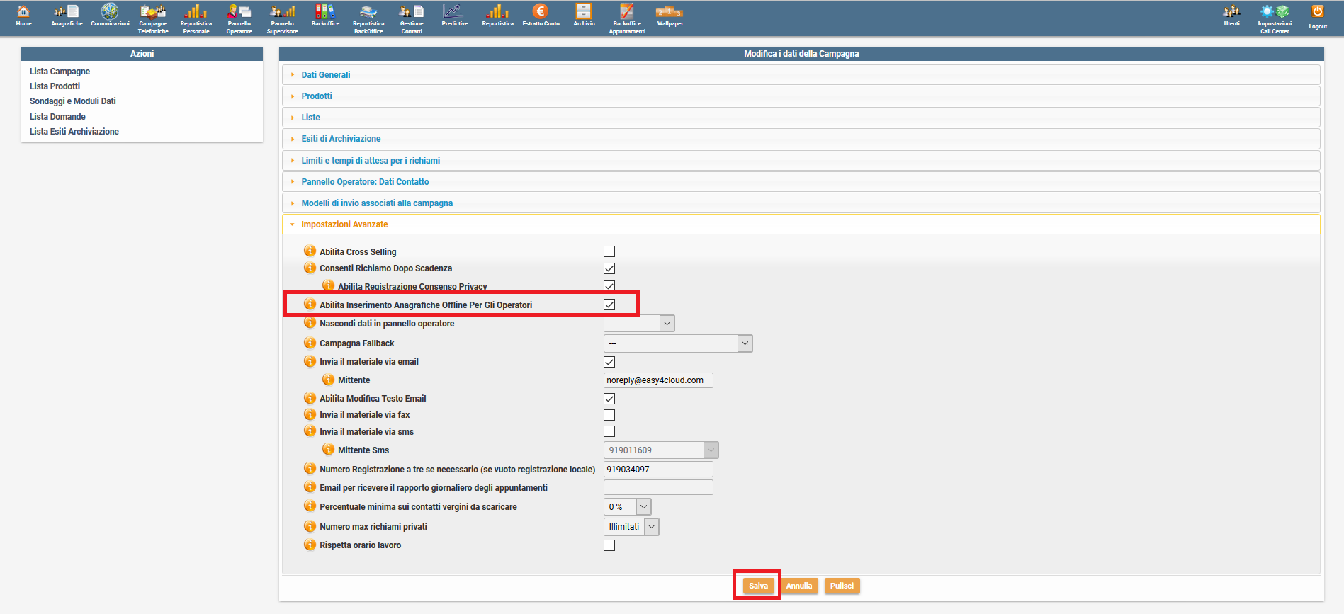 Il contatto offline è quel contatto che viene inserito nella campagna senza alterare l’anagrafica già caricata.