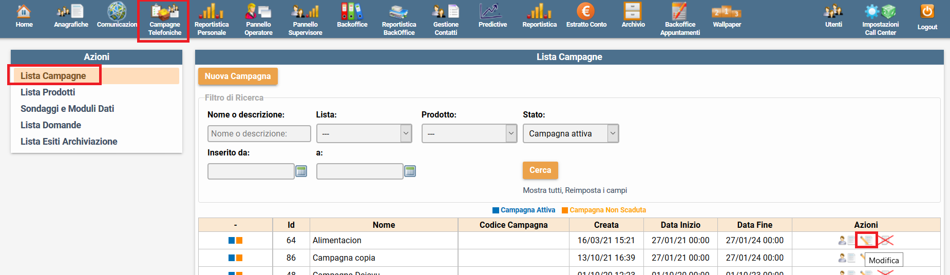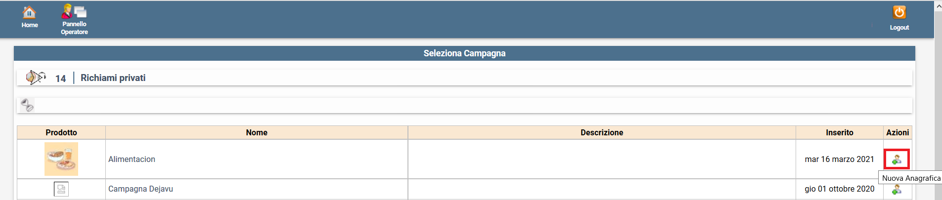 Il contatto comparirà, quindi, nella schermata dell’operatore che potrà archiviarlo a seconda dell’esito della conversazione relativo alla campagna di riferimento.