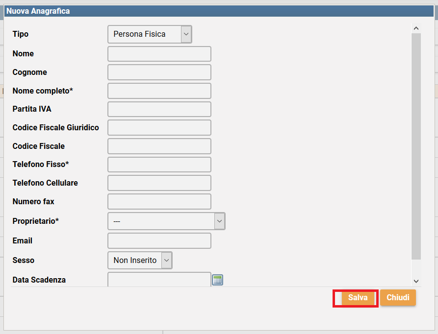 "hai terminato i contatti". Questo accade quando si entra la prima volta nell'anagrafica all'orario stabilito, ma non la si lavora e la si lascia non archiviata. Al secondo ingresso apparirà questa scritta. Per poterci rientrare, andare sull'orologio di destra, modificare l'orario di quando la si vuole riaprire e riprovare.