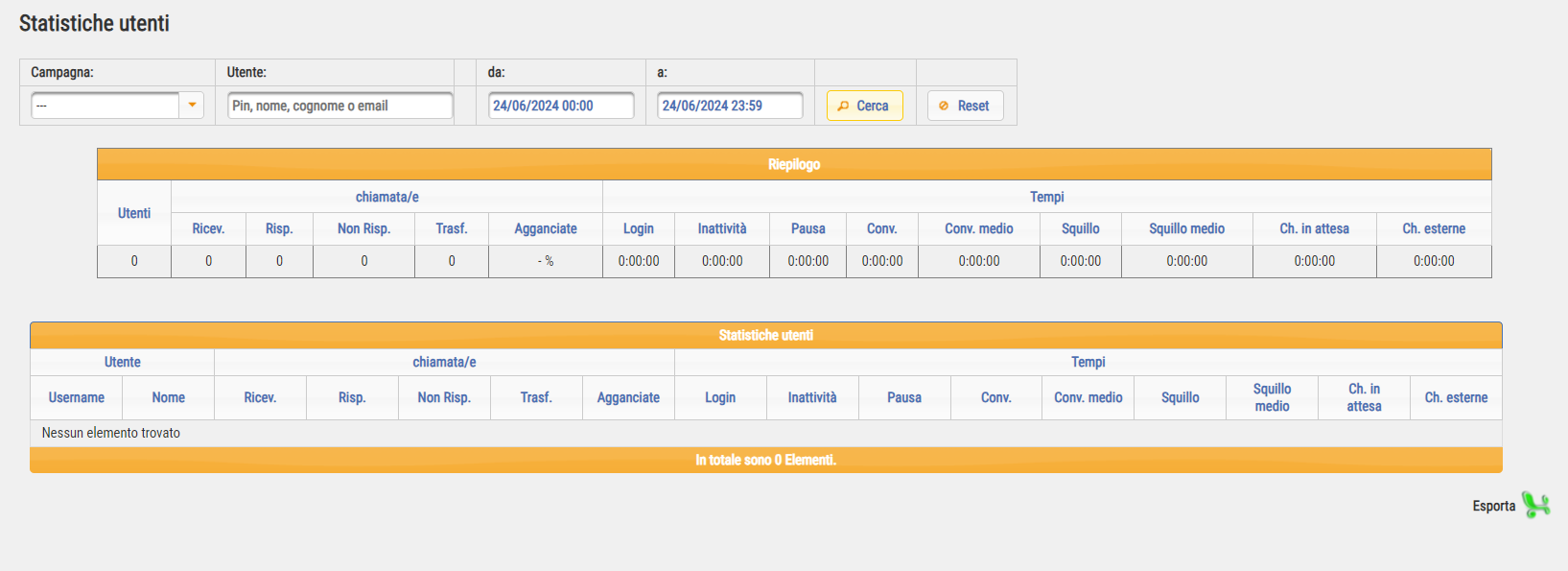 - campagna: è possibile filtrare le chiamate abbandonate in base alla campagna verso cui erano state indirizzate.