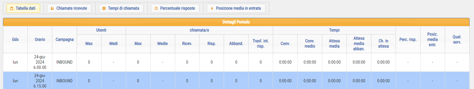 Questo report ci permette di ottenere i dati relativi a tutte le chiamate passanti per il CRM. |