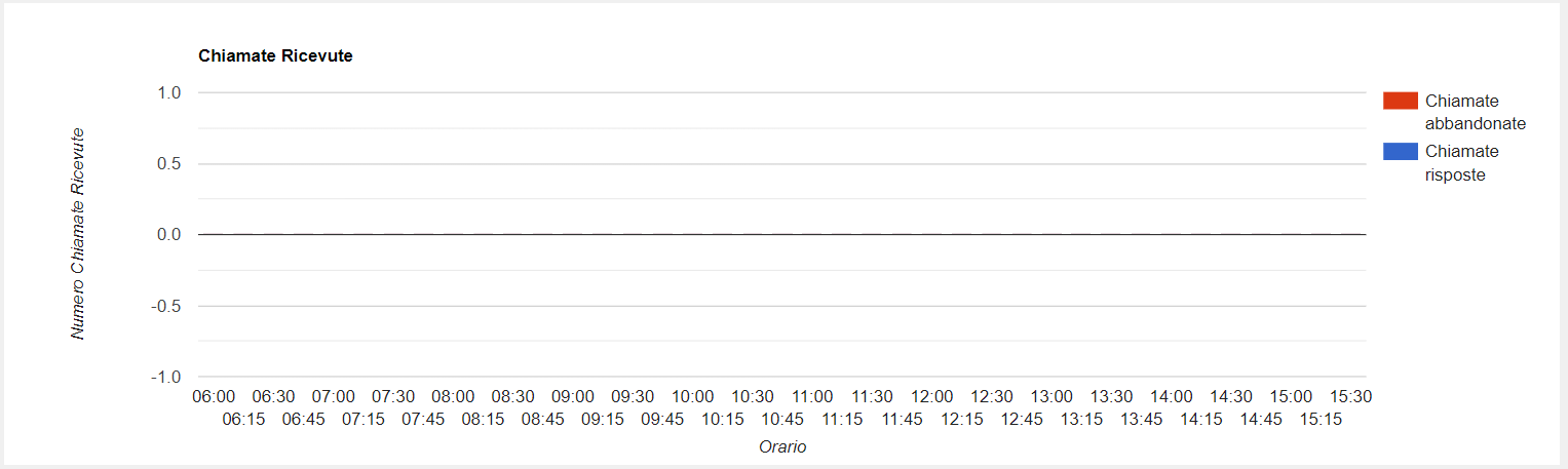 Sull'asse orizzontale troviamo le fasce orarie dettate dalla frequenza impostata. Sull'asse verticale invece il numero delle chiamate ricevute. Ogni singolo rettangolo verticale sarà costituito da una sezione di colore blu, rappresentativo delle chiamate risposte, ed una sezione rossa, rappresentativa delle chiamate abbandonate.