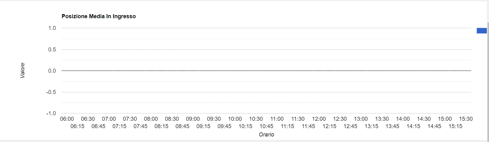 - Infine, possiamo scegliere il tasto "posizione media in ingresso" ottenendo un grafico ad istogrammi rappresentativo della posizione media in ingresso delle chiamate indirizzate sulla coda. Questo grafico è utile per capire quali sono le fasce orarie che necessitano di una presenza maggiore di utenti e quali meno.