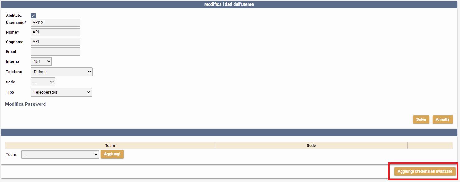 4) Aggiungi credenziali avanzate