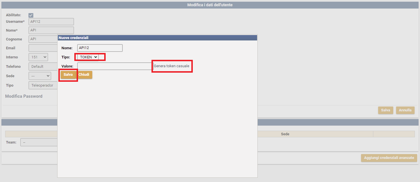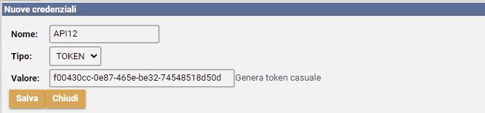 Il token generato è da comunicare ai vostri tecnici per le relative configurazioni API.