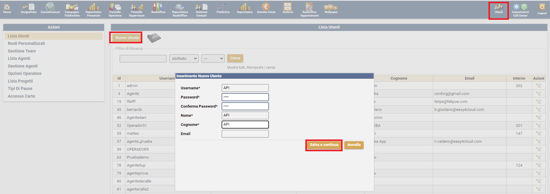 3) Modifica utenti