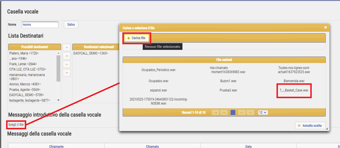 N.B.: Se non viene inserito nessun utente sulla destra, la voicemail restituisce come messaggio ‘utente non disponibile’
