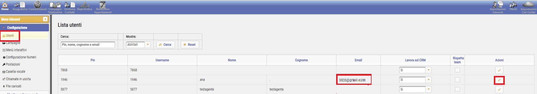 5) Per modificarne le configurazioni cliccare sul simbolo della matita nella voce ‘Azioni’: